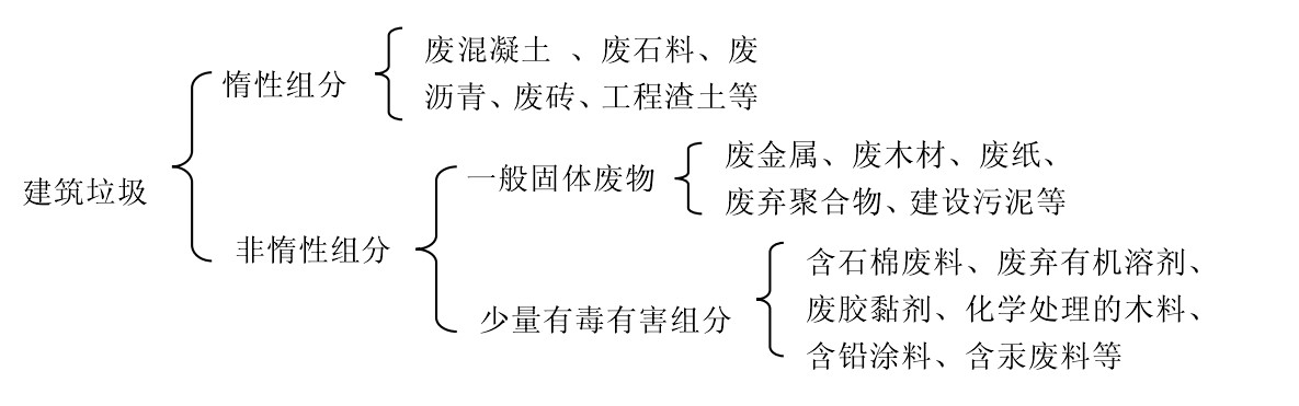 為了保證建筑垃圾的無(wú)害化處理及提高建筑垃圾的處置效率,可將建筑垃圾按其化學(xué)性質(zhì)分為惰性組分和非惰性組分。